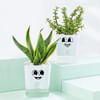 Cheerful Jade And Snake Plant Combo In Smiley Planters