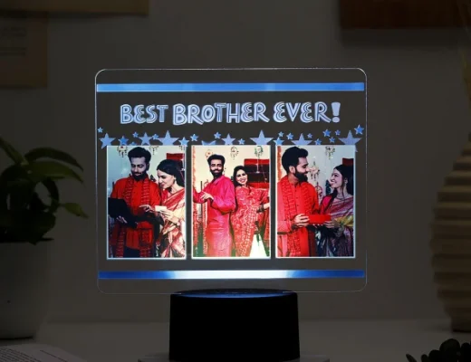 Add a personal touch to your celebration with unique rakhi hampers for your brothers by crafting a custom photo Rakhi. Include a cherished photo of your sibling in the centre, surrounded by beads and pearls, to create a memorable Rakhi.