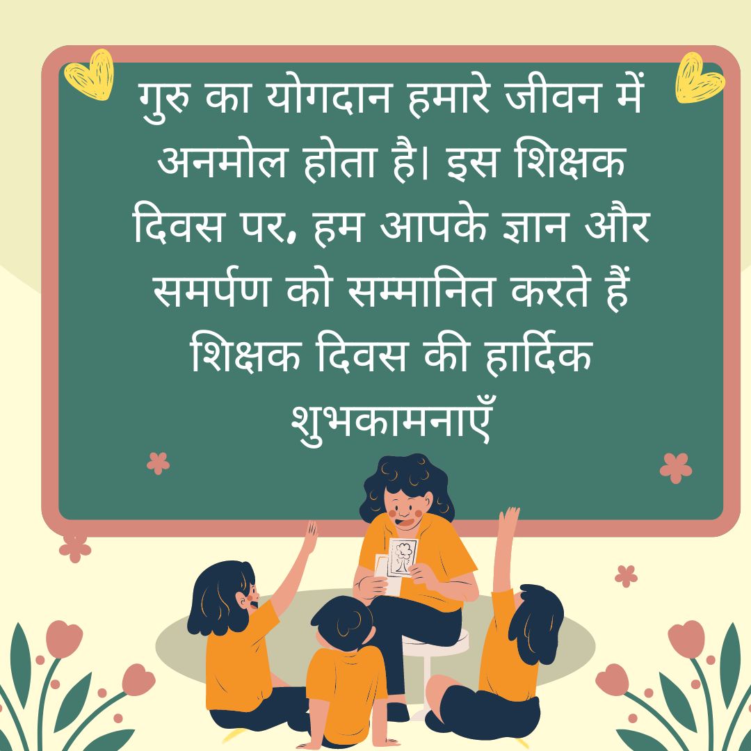 - “आपके बिना शिक्षा अधूरी है, और आपके बिना मार्गदर्शन नहीं हो सकता। शिक्षक दिवस की हार्दिक शुभकामनाएँ!”