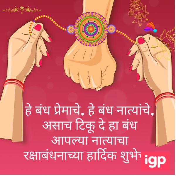 - “हे बंध प्रेमाचे, हे बंध नात्यांचे, असाच टिकू दे हा बंध आपल्या नात्याचा. रक्षाबंधनाच्या हार्दिक शुभेच्छा!”