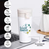 Every journey begins with intention, and this thoughtfully curated hamper turns wanderlust into a lifestyle. Designed for explorers at heart, it blends planning, practicality, and personal style into a gift that inspires movement and memories wherever life leads. - Blue Diary: PU cover diary reading 365 Days 365 Ways with their name, sized at 10 x 14.2 cms, perfect for travel plans and reflections. - Insulated Stainless Steel Sipper: It reads World Traveller, measuring 7.5 x 7.5 x 15.5 cms, ideal for drinks on the go. - Passport Cover: Wanderer illustration passport cover with their name, sized 13.9 x 9.6 cms, for stylish protection. - Personalize the diary and passport cover with their name, making it a practical and useful gift.