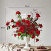 An opulent expression of love unfolds in deep, passionate hues, arranged with effortless grace and timeless charm. Set in a classic white pedestal vase, each bloom captures love, admiration, and desire in a single, breathtaking gesture. - Total No. of Stems: 50 - Red Roses & Eucalyptus - 'I Love You More Everyday' Scallop Tag - White Urn, PVC - Dimensions: - Height: 80 cms / 32 inches - Width: 76 cms / 30 inches
