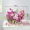 With every petal, nature reveals its timeless beauty, thoughtfully arranged in a classic English basket. This exquisite arrangement combines soft pink roses, vibrant purple orchids, and delicate carnations, all harmonizing to create a masterpiece of natural beauty. The mix of pastel and vibrant blooms evokes feelings of joy and sophistication. This luxurious floral gift is the perfect way to mark a special occasion or make a memorable statement. - Includes: - Total No. of Stems: 14 - Purple Orchid, Sweet Avalanche Rose, Pink Carnation, Mauve Chrysanthemum - Pink Tissue Wrap & Satin Ribbon - English Garden Basket - Dimensions: - Height: 35.5 cm / 14 inches - Width: 48 cm / 19 inches