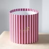 Designed to celebrate love and the moments that matter most, this Valentines arrangement features red roses softened with delicate pink sprayed gypso for a romantic contrast. Wrapped in rich red frosted film and finished with a plush red ribbon bow, the florals are styled in a maroon and pink striped box that feels bold yet elegant. A personalised Polaroid image, held delicately on a gold metal stick, adds a heartfelt keepsake element that transforms the arrangement into a memory meant to last. Perfect for Valentines Day, this thoughtful composition blends romance, sentiment, and timeless beauty into a gesture that speaks straight from the heart.Product Dimensions: H- 24 '' x W- 18''
