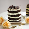 A mocha-toned indulgence, thoughtfully put together with richness in every detail. Dried cornflowers, franklinia, and eryngium rest over brown paper shreds and sheet oasis, wrapped in brown paper and jute mesh in a round tray. Paired with a mini mocha chocolate cake, decadent dark chocolate bar, healthy pistachio crunch bites, nutty tuxedo popcorn, and a wooden box tied in black and white ribbon with pistachios and peri peri almonds. An elaborate hamper to gift someone a moment of pure delight. Disclaimer: All cakes are Baked to order and 100% Eggless.