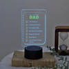 Shine a light on everything your dad is with this unique LED lamp. Featuring a transparent acrylic sheet printed with a playful yet heartfelt checklist of Dads many roles like life advisor, problem solver, personal ATM, and more topped with the bold title All In One Dad. Resting on a sleek black base, the lamp offers seven RGB colour options and comes equipped with both a battery slot and USB charging. A glowing reminder of how much he means, this gift is both functional and full of love.