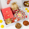 Brighten your team's Diwali with this Diya holder Diwali hamper. This thoughtful hamper features a red net potli filled with black pepper cashews and almonds. The Peacock Diya and metal tealight holder add a traditional touch, while the metal rangoli elevates the festive decor with Chana Badam Barfi. Personalize the Happy Diwali greeting card with your brand logo for gifting it to your vendors, clients, and employees. Note: We can make customized boxes for the MOQ above 500. Below that, we can customize our existing boxes, sleeves, and etc with your logo. Please connect with us for more.