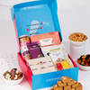 Secure your bond this Rakhi with the Elegant Duo Rakhi and Treats Hamper. This thoughtful rakhi for brother collection features a stunning set of two semi-precious purple stonework Rakhis, showcasing exquisite craftsmanship. Indulge his taste buds with traditional chana badam barfi, a refreshing berry mix, and the wholesome Masqa healthy mix. For a nutritious crunch, a Healthy Treat roasted millet mix jar is included. Complete this auspicious occasion with Roli Chawal, making it a perfect rakhi online gift for a truly memorable Raksha Bandhan.