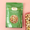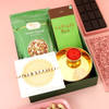 This beautiful modern designed marble effect beads rakhi can be wound around the wrist thrice. It comes along with a smooth kiwi dark chocolate bar, a packet of heart healthy pistachios, a gold toned Pooja Thali and Katori set with a Roli-Chawal pouch.