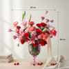 Win their heart with a luxurious valentines day gift designed to look straight out of a five-star suite. This arrangement blends red roses, Noblesse roses, and Sweet Avalanche roses for rich depth and romantic contrast. Pink sprayed limonium adds airy texture, while pink lilies and pink lisianthus bring graceful height and a soft, elegant finish. Styled in a premium pink glass vase and completed with an offwhite ribbon, it arrives display-ready and effortlessly chic. Perfect for Valentines surprises, this arrangement delivers fragrance, fullness, and a statement-worthy presence that makes the moment feel truly special. Product Dimensions: H- 26''x W- 22''