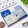 Brighten your teachers' day and surprise them with this hamper crafted to fulfil their need for daily essentials. The hamper includes a blue notebook that reads 'You Don't Just Teach You Inspire', paired with a matching pen. Furthermore, the hamper comes with a mobile stand, having the words 'Best Teacher Ever' on it, and a Velvety Bar Milk Chocolate, which offers a sweet treat alongside meaningful gifts. Lastly, a 'Happy Teacher's Day' greeting card completes the lovely ensemble. This gift can efficiently win over your teacher's heart, so express your gratitude for them.