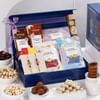 Infuse your Raksha Bandhan festivities with this blue elegance rakhi hamper. Among the premium rakhi hampers for your loved ones, this exquisite gift features a stunning blue Meenakari with Kundan work bhaiya bhabhi rakhi, symbolizing prosperity and affection. Indulge their sweet cravings with a delightful array of treats, including luxurious chocolate-coated almonds, classic center filled choco-cookies, and decadent Ferrero Rochers. Complementing these are premium plain cashews, pistachios, and kaju katli. Complete with traditional roli and chawal for the tilak ceremony.