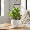 Known to bring clarity, peace, and a sense of renewal, the Aglaonema Snow White is often seen as a symbol of fresh starts and positive energy. Planted in a white pot with a lightly geometric textured surface and a sleek base plate designed for ease of care, it brings together beauty and function in the most effortless way. Paired with smooth white stones and presented in an Interflora luxury box, it is a bright beginning made to grow with you.