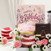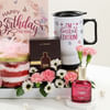 Brighten your loved ones special day with this Cheerful Personalized Birthday Delights Hamper. The stunning sandwich frame, adorned with the cheerful words Happy Birthday To You, is perfect for preserving heartfelt memories. The red velvet cake jar adds a sweet indulgence, while the cuddle perfume offers a warm and comforting scent. Completing the hamper are delicate pink spray carnations and pristine Santiny white blooms, beautifully arranged in an elegant acrylic tray. A sleek travel mug, boasting I Am Limited Edition and their name personalized on the back, makes every sip special.
