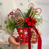 Step into the season with a gift that feels warm from the moment it is in your hands. Inside a charming ceramic mug, you will find plum cake, fresh cyprus foliage, a gold-sprayed pine cone, candy canes, and a sweet little tree ornament tucked in like a surprise waiting to be found. The mug itself is printed with a joyful Christmas design and finished with a rich red suede ribbon reflecting the festivities. It is a cosy, thoughtful choice for anyone who loves simple holiday moments wrapped in a little magic.
