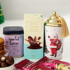 Christmas means double the joy. So infuse your celebrations with this indulgent hamper of Kulfi and Cherry Dragees, Kiwi and Cranberry Chocolate, Assorted Cookies, Choco Coated Almonds, Black Pepper Cashews in a festive Canister, snowman, yummy plum cake and a Christmas tree reindeer ornament.
