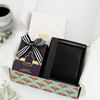 Surprise your loved ones with this stylish hamper and make them feel special. Meticulously crafted in leather, the black wallet has multiple slots for binding all the cash and cards. Paired with it is a boastful Eau De Parfum, which hits all the right notes of Musk, Neroli, and Cinnamon, a captivating fragrance for the senses. Furthermore, the hamper contains a pair of black matt finish cufflinks. Present this gift to him and bring a smile to his face.