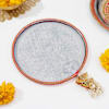 Add elegance and a touch of sophistication to your Karwa Chauth celebrations with this Classic Pooja Thali Hamper. Thoughtfully crafted to meet all your pooja needs, this exquisite hamper includes a beautifully adorned pooja thali, channi, bindi, roli chawal, mehendi, kajal, a dupatta, kalash, and sindoor. Each item is of high quality and reflects the traditional essence of Karwa Chauth, making your celebration truly special. This classy hamper also comes with a heartfelt greeting card adorned with the words Chauth Mata, adding a loving and unique touch to the hamper.