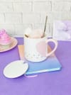 Coffee Mug With Lid And Spoon - Heart - Ceramic - Single Piece