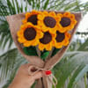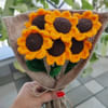 Unwrap a bundle of handmade happiness with this cute crochet sunflower bouquet. Meticulously crafted with love for everlasting joy, the intricately woven petals spread love and creativity. Handcrafted with fine - quality yarn for an endless bloom, these crochet sunflowers do not wither away like real flowers. They brighten life with every stitch. The shape and structure of each bloom and leaf resemble those of a real tulip and will surely brighten any space wherever you place them. This bouquet also makes a perfect gift for your loved ones.