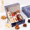 Flavour-packed snacking feels extra special in this stunning blue floral jaal box, curated for instant gifting. Crisp, crunchy, creamy, and coffee-kissed treats come together for the perfect balance of sweet and savoury, making it a sure win for friends, colleagues, and family. Every bite turns tea-time into a mini indulgence, while the keepsake-style box adds premium gifting appeal. Perfect for birthdays, thank-yous, festive visits, or surprise cravings. - Includes: - Jacker Potato Crisp Original - Masqa Velvety Chocolate Madagascar Dark - Masqa Coffee Chocolate - Center Filled Choco-Cookies - Snack Heist Gourmet Popcorn Coffee Caramel