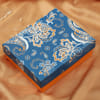 Amazing set of bhaiya bhabhi Rakhis in crystal and kundan stones with pacchi work. The Rakhis have exquisite metal carving. With the Rakhis is a set of cute bhaiya bhabhi personalized caricature.