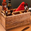 Sturdy mango wood with metallic detailing this caddy has one large and three small compartments, making it perfect to hold onto cutlery, paper napkins etc. Note: All our products are handcrafted one at a time. Every piece is a creation of artisans, and based on different craft styles. There may be natural blemishes/ variations that are not product flaws.