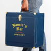 Elevate the happy hour for them with the ultimate jumbo home bar set. This comprehensive collection includes everything for the perfect drink a shaker, stirrer, hipflask, jigger, tongs, bottle opener, ice bucket, and corkscrew. It also features four whiskey glasses and four coasters for a complete experience. All these premium tools are elegantly housed in a sophisticated PU leather blue case, emblazoned with Open 24 By 7, and secured with a practical lock and handle. Personalize the case with their name for an ideal gift for connoisseurs.