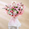 A soft embrace in bloom-blush roses, carnations, chrysanthemums and airy gypso with eucalyptus, finished with lace-like detailing. Sweet, graceful, and just the right amount of you're my favourite call of the day.