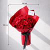 A dramatic expression of unapologetic romance, featuring striking red blooms wrapped in deep frost paper and finished with a bold black ribbon.Timeless red hues meet powerful visual depth in this dramatic floral handtied - Total No. of Stems: 40 - Red roses - Red frost wrap - Interflora black ribbon bow - I love you more everyday tag - Dimensions: - Height: 68 cms / 27 inches - Width: 45 cms / 18 inches