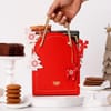 Gift them a cheerful dose of festive joy with a hamper that blends sweetness, charm, and holiday spirit. Inside the coral red paper bag with its golden dori, you will find centre-filled choco-cookies, rich choco walnut brownies, and two Masqa Velvety Chocolate Classic Milk bars for a truly indulgent spread. Two red reindeer ornaments and two Christmas tree wooden hangings add a decorative touch that feels perfect for the season. It is a thoughtful mix of treats and trinkets that suits friends, family, colleagues, or anyone who deserves a little extra cheer. This hamper makes sharing Christmas happiness effortless and memorable.