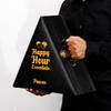 For the discerning gentleman, this ultimate bar set delivers everything needed for perfect mixology. It includes three elegant whiskey glasses, a sleek shaker, a precise jigger, a convenient bottle opener, and practical ice tongs, alongside a matching hip flask. All these essentials are meticulously arranged within a stylish black triangle leather case, featuring a secure lock and handle, printed with Happy Hour Essentials and your name. This set is an exceptional gift, ensuring he is always prepared for a refined drink and memorable moments. Personalize the leather case with his name.