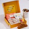 Reflect eternal bonds this Rakhi with the Sacred Motif Rakhi Hamper. This divine Raksha Bandhan gift for brothers features a set of three designer rakhis crafted from polished copper metal, exquisitely studded with CZ stones and adorned with auspicious Om, Lord Ganesha, and Lord Ram motifs. Indulge his palate with traditional Chana Badam Barfi and a wholesome Masqa Healthy Mix for a balanced treat. Complete the sacred traditions with essential Roli Chawal, ensuring a truly blessed and memorable Raksha Bandhan celebration with love.