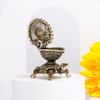 A beautiful blend of symbolism and craftsmanship. This brass diya features a graceful peacock backdrop and a turtle-shaped base, both considered auspicious in Indian tradition. The diya bowl is deep enough to hold oil and wick steadily, making it perfect for everyday use or festive pooja. Its intricate detailing and sturdy design give it a timeless, antique look. Whether you are lighting it for daily prayers or gifting it for a housewarming or Diwali, this piece brings warmth, tradition, and a touch of elegance to any space.