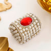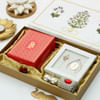 This Bhai Dooj, show him how much he means to you with this hamper. Packed in a marble design kappa box, this luxurious hamper includes kaju katli, a five-gram silver coin, Dibbi with roli-chawal in glass bottles with a silver polished container and moli. The hamper also includes the classic and mouthwatering Kaju Katli, which will leave you craving for more. The coin features an embossed image of Lord Ganesha along with a tree of life design. Giving a silver coin is considered auspicious as it brings luck, happiness, and peace to the receiver.