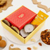Celebrate the joyous occasion of Diwali with this exquisite hamper that embodies the essence of traditional festivities. Arranged elegantly in a yellow tray, this hamper includes four metal candles, Besan Laddoos, dry fruits mix. Savour the sweet indulgence of Besan Laddoos with the wholesome goodness of crunchy dry fruits. The intricately designed metal candles included symbolize the triumph of light over darkness. Gift this hamper to your loved ones, wishing them a prosperous Diwali.