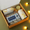 A diwali gift hamper that has a little something for everyone, this exclusive gift pack contains flavoured almonds and cashews, baklava sweets, two canisters and two floral metal candles. All of this is beautifully packed in an elegant gift box. It also includes a greeting card.