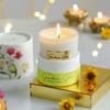 A Cheerful Diwali Gift Box That Captures The Radiance Of The Festival Of Lights. A Blooming Orange Kalanchoe Plant In A Yellow Block Print Ceramic Planter, Is Paired With Gourmet Treats — Black Pepper Cashews, Salted & Roasted Almonds, And Soan Papdi Bites — And Finished With A Luxury Gardenia Glow Scented Candle And A Diwali Card. Presented In A Keepsake Round Box, This Curation Shines With Festive Charm. A Thoughtful Luxury Diwali Gift Box For Family, Employees, Or Friends.