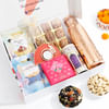 Light up the festival with the Enchanting Celebration Diwali Hamper. This elegant gift features a D-shaped peacock diya, a hammered copper bottle, Masqa Healthy Mix, Classic Cashew Nuts, Lebanese Baklava, Patchouli incense sticks, luxury Sambrani dhoop cups, and a Hawan Kund. A Diwali greeting card completes this royal hamper. Personalize the card with your brand logo and gift it to your vendors, clients, and employees. Note: We can make customized boxes for the MOQ above 500. Below that, we can customize our existing boxes, sleeves, etc., with your logo. Please connect with us for more.