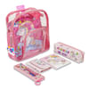 Make school time magical for your kids with this adorable 11-in-1 unicorn stationery kit. Packed with essentials, this set includes a transparent school bag, a stationery pouch, a book, a wallet, a carry bag, and a compass box filled with two pencils, an eraser, a sharpener, and a ruler. Each item is beautifully designed with cute unicorn illustrations, adding a touch of whimsy to everyday learning. The lightweight and portable set keeps everything organized, making it perfect for school, travel, or gifting. Let your little one shine with this delightful unicorn-themed stationery kit.