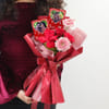 Make your special day unforgettable with this stunning bouquet of love. Featuring a beautiful mix of red roses and pink gerberas, this bouquet is wrapped in a red frosted sheet and mauve roll, hand-tied with a red organza ribbon. As a special touch, two personalized fridge magnets are included, each showcasing your favourite image with the sweet messages, You Complete Me and Love Of My Life. Personalize the fridge magnets with your cherished memories for a heartfelt and unique gift to make your celebration remarkable.