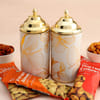 There's nothing more powerful than the prayers of a married woman. While she wishes the best for you, get her a hamper that comprises Puja Samagri essentials, Om Puja Thali, Kalash, Chalni, along with Sargi like Peri Peri Almonds, Thai Chilli Cashewnuts in floral canisters and Kaju Katli.