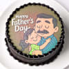 Celebrate Dad with this heartwarming Happy Father's Day chocolate photo cake. This delicious cake features a touching edible illustration of a father-daughter hug, perfectly conveying your love and appreciation. The Happy Father's Day text adds a festive touch to this thoughtful treat. Made with rich, moist chocolate, it is an irresistible dessert that will make his day extra special. A truly sweet way to show Dad how much he is cherished.