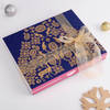 Let your clients, vendors, and employees delight in the joy and magical Christmas celebrations with this charming hamper arranged in a chic blue slider box. Adorn the Christmas tree with exquisite ornaments, savour the Velvety Bar dark chocolate, and delight in handcrafted wooden blocks, adding rustic charm to your decor. Completing the set is a delightful jute potli. Curated to enhance the joy of Christmas, this ensemble of elegance and festive cheer promises to illuminate your celebrations. Personalize with your brand logo and make it a special Christmas gift.