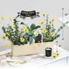 A serene curation in soft tones of yellow and green, bringing together natural beauty, gentle comfort, and a sense of ease. Dried yellow daisies, bunny tails, craspedia, and eucalyptus are paired with a peace lily planted in a white planter. Alongside it, a Southern Magnolia candle carries creamy floral notes of jasmine, gardenia, and tuberose, resting on a warm musky base. A tender gesture of calm and care, thoughtfully composed.