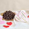 An ode to timeless love, Forever in Your Heart combines radiant red, Jumalia, and Sweet Avalanche roses in a large cane basket, wrapped in pink holographic sheets and tied with a pearl-edged ribbon. Paired with a tuberose jasmine reed diffuser, a heart balloon, red foil balloons, an Amore teddy bear, and chocolate-coated almonds, this creation is a lasting symbol of the love that stays with you forever.