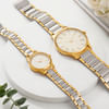 Experience a timeless and elegant journey with this combo. Crafted with precision, the men's watch boasts a sturdy 37.5mm brass dial, while the women's counterpart features a 24.5mm brass dial, perfectly complementing any wrist size. Exuding sophistication, this watch pairs well with any outfit. These watches are durable thanks to their tough alloy case, stainless steel band, and a two-tone PVD coating for added strength. Powered by the Japanese Quartz Movement, it epitomizes style. Make this gift even more meaningful by adding your names, which will be engraved on the back of the watch dial.