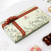 Experience the joy of Christmas with this luxurious hamper. Nestled in a floral green gift box, it features a delicious fruit cake, tantalizing kulfi and hazelnut dragees, yummy Jujube gummy candies, a charming round acrylic Christmas tree decor, setting a beautiful display and a greeting card. This beautifully curated hamper brings warmth, charm, and sweetness to your festivities. Personalize with your brand logo and make it a special Christmas gift.