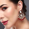 Add a royal flair to your ensemble with these stunning gold-toned Chandbali earrings by Anvik. Embellished with mirror-like stones in a floral pattern and detailed with deep red and pearl-like beads, these earrings radiate festive charm. The intricate arrangement and vibrant hues make them perfect for weddings, traditional events, or statement styling. Crafted in metal alloy, they offer durability without compromising on elegance. Lightweight yet eye-catching, these earrings are a bold fusion of heritage and contemporary fashion, designed to elevate your outfits with a graceful, radiant touch.