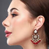 Gold-plated Kundan And Meenakari Chandbali Earrings - Red